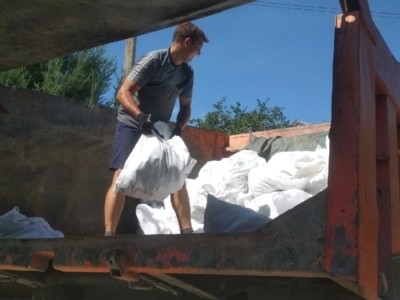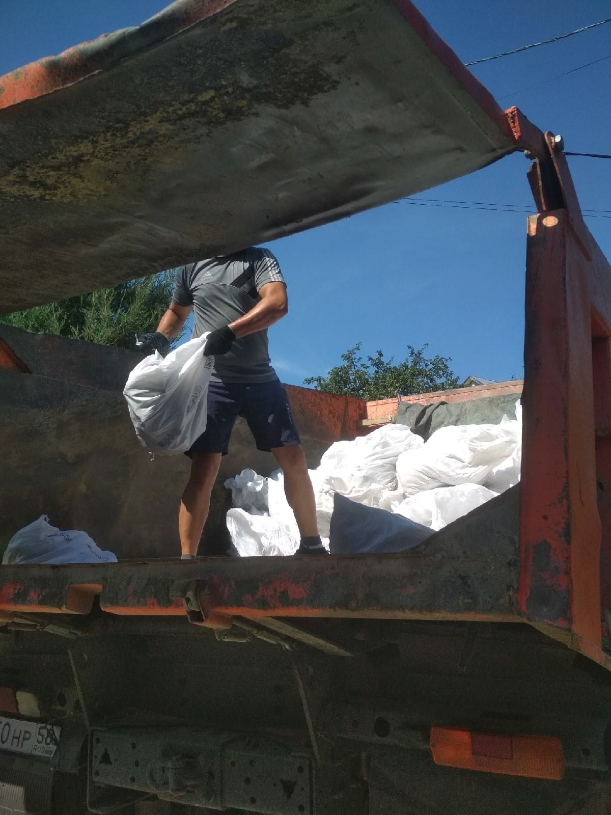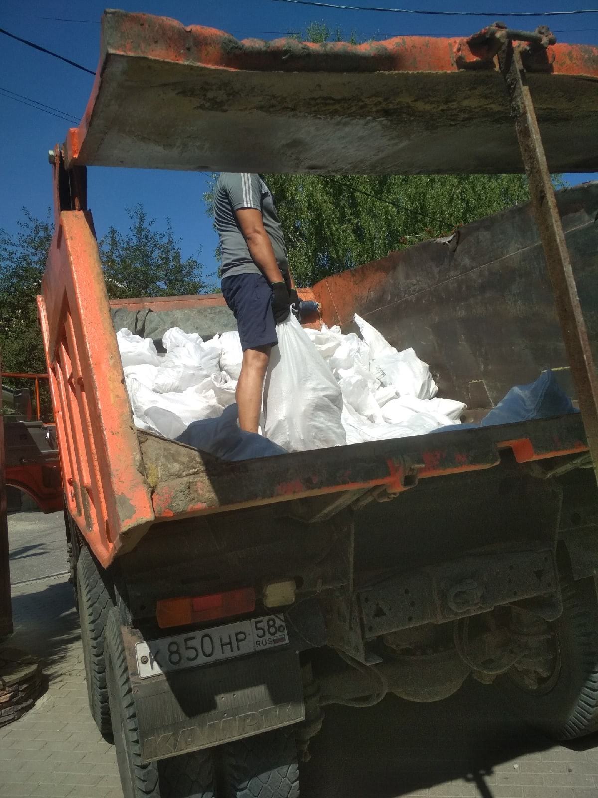 На заказ было направлено 2 человека, а так же был заказан КамАЗ 10 тонный 10 кубовый горбач. Загрузка двумя работниками заняла у нас час, мусор был после слома кирпичных перегородок в частном доме. Загрузили более 6 тонн мусора в мешках.
